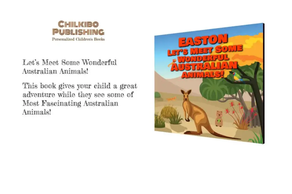 You can find this “Let’s Meet Some Wonderful Australian Animals!” – book by 120 different kid names on the Amazon book store.